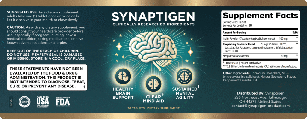 Synaptigen is formulated with powerful probiotics, prebiotics, and plant-based nutrients all carefully chosen to deliver effective support for brain health, memory, focus, and overall mental clarity.